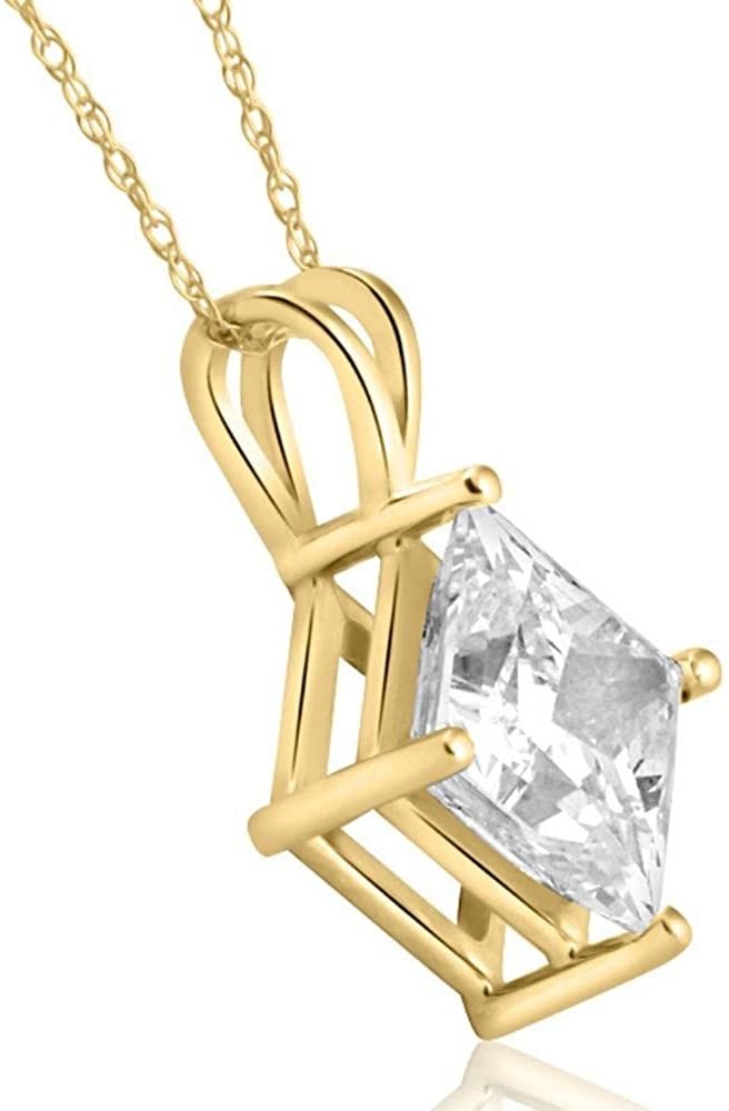 3.09Ct Certified Princess Cut Solitaire Diamond Pendant Yellow Gold Lab Grown